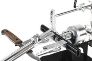 The universal attachment for the convex sharpening of knives is mounted on the abrasive holder and provides an even change in angles across the entire width of the secondary bevel.